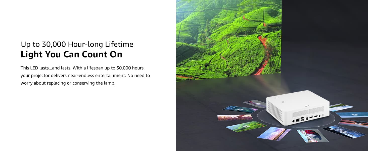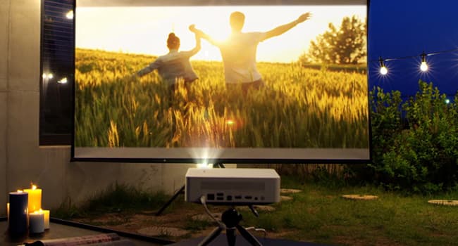 تمتع بمشاهدة الأفلام والبرامج الوثائقية وحتى المباريات بحصولك على بروجكتر من LG بروجكتر عالي الجودة يوفر لك جو سينمائي مميز ضمن منزلك أو الفناء الخارجي للحصول على وقت مثالي مع العائلة والأصدقاء.