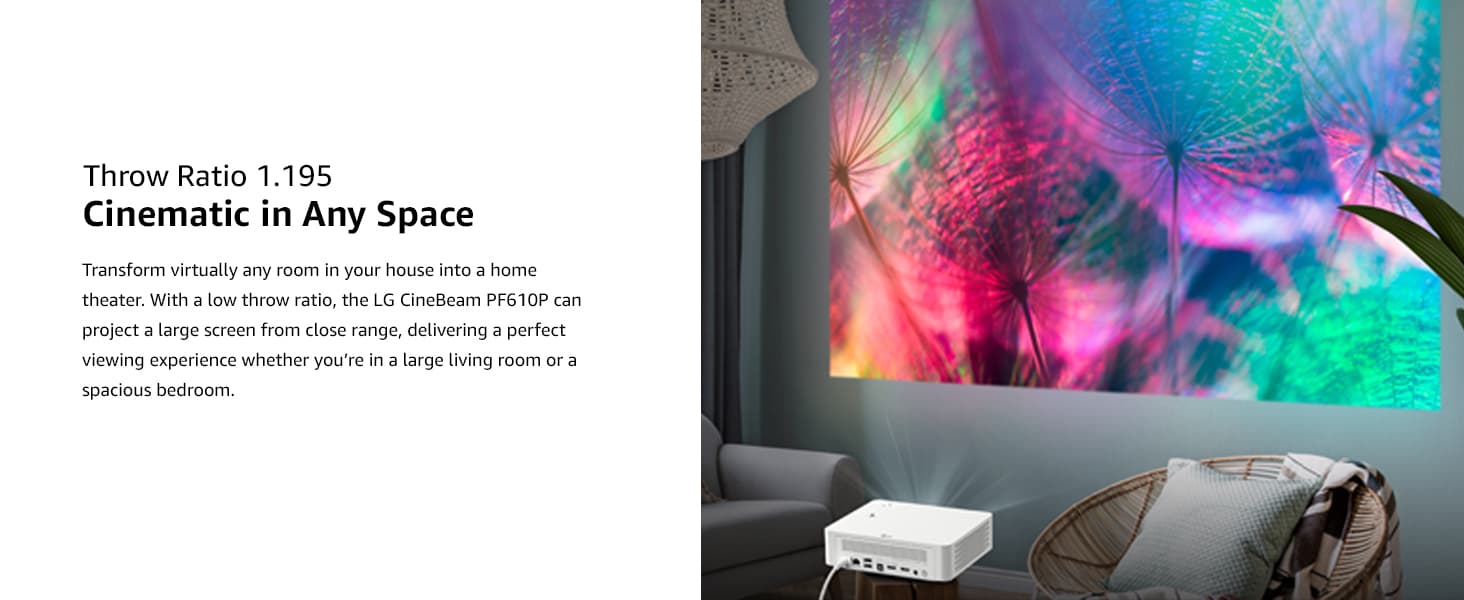 بروجكتر صغير 1000 ANSI ذكي أبيض ال جي LG CineBeam PF610P LED XPR FHD Smart Home Theater DLP Projector
