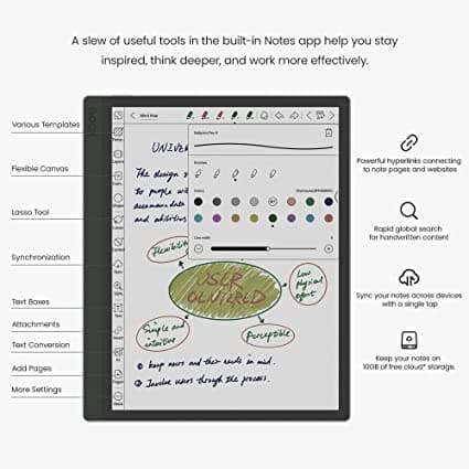 جهاز تابلت بوكس تاب الترا سي الذكي BOOX Tab Ultra C Tablet من شركة ONYX مناسب للقراءة الإلكترونية، شاشه بقياس 10.3 بوصة تعمل باللمس، مما يقدم لك تجربة مريحة للغاية أثناء القراءة حيث أن له العديد من الوظائف منها القراءة الإلكترونية للكتب، الرسم باليد وتدوين الملاحظات باستخدام القلم المرفق معه وتثبيت التطبيقات المفضلة لديك كونه يعمل بنظام الأندرويد ومزود بإضاءة أمامية ومعالج ثماني النواة وتتيح شاشته الكبيرة قراءة معظم المستندات بجميع أنواعها بشكل مريح والعديد من المزايا مثل تغيير الصفحة، تحديد المنطقة المراد تكبيرها، تمييز النص، تغيير نمط الخط وحجمه وموضع الصفحات.