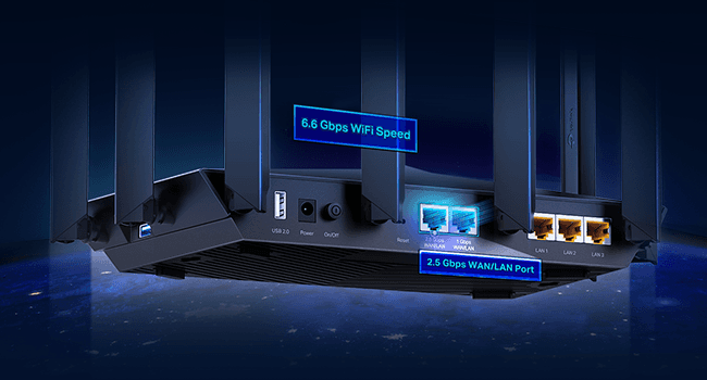 - راوتر تي بي لينك مزود بثلاثة منافذ LAN بسرعة جيجابت مع منفذ WAN بسرعة 2.5 جيجابت مع منفذ USB