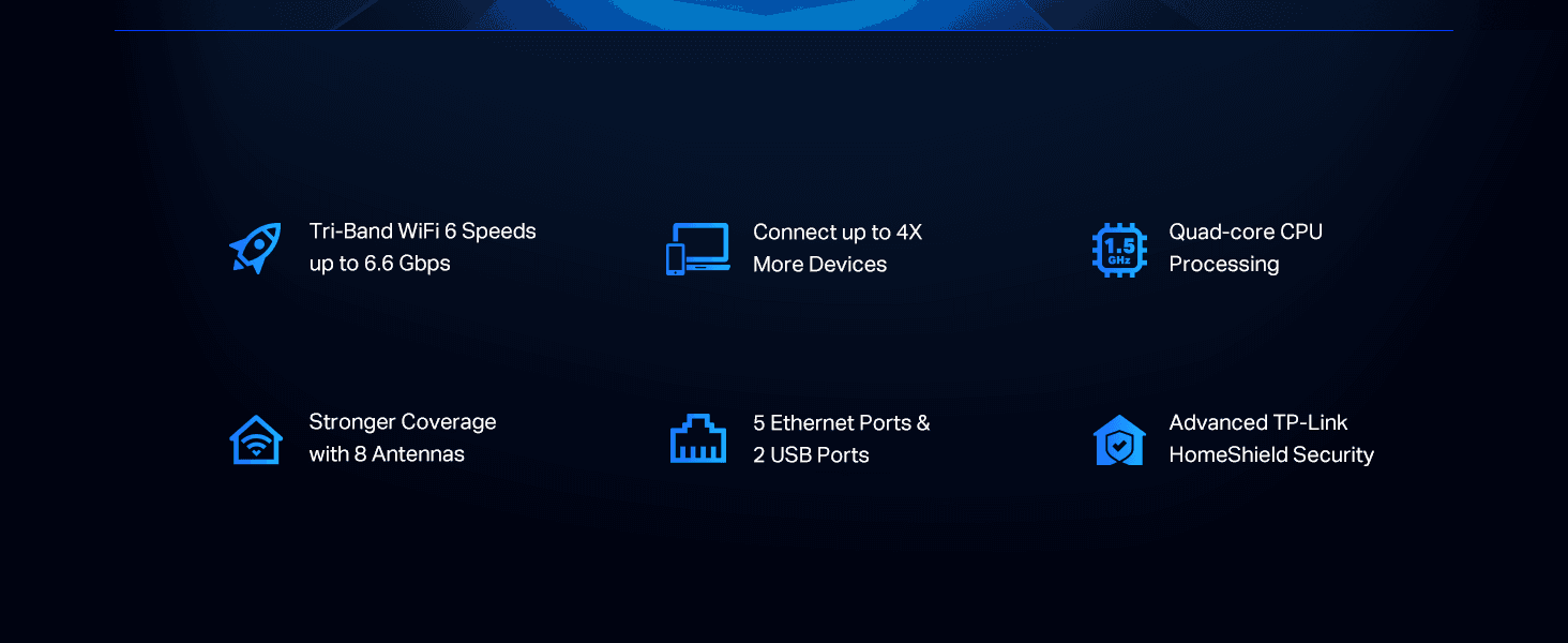 راوتر واي فاي 6 ذكي تي بي لينك TP-Link Archer AX90 AX6600 Tri-Band Wi-Fi 6 Router