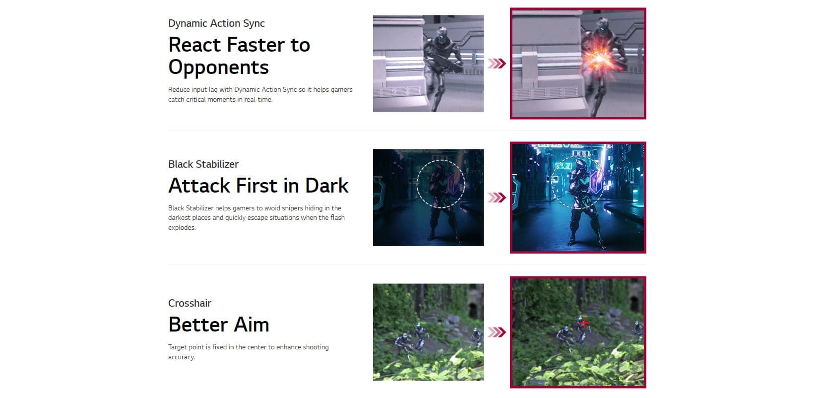 - تدعم ميزات متعددة منها (HDR 10, HDR Effect, Flicker safe, Reader Mode, Motion Blur Reduction, G-Sync™ G-SYNC Compatible, AMD FreeSync™ , FreeSync, Black Stabilizer,Dynamic Action Sync, Crosshair) للحصول على أداء أفضل مقارنة بباقي الشاشات