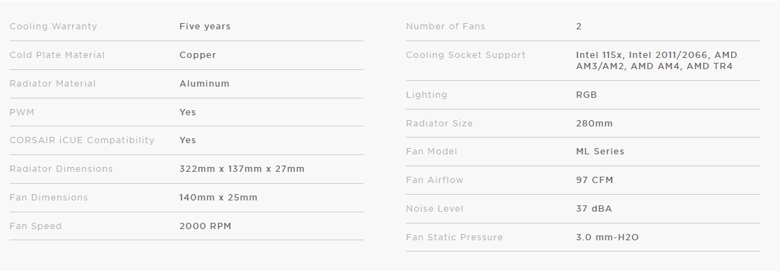 - 29 مصباح قابل للعنونة بحيث 13 مصباح على غطاء المضخة و 16 على المراوح يمكن التحكم بها بفضل تطبيق ICUE