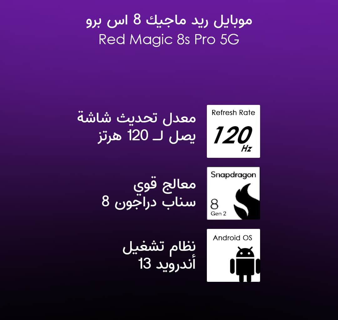 - نظام التشغيل: REDMAGIC OS 8.0 بناءً على Android 13.0