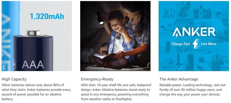 Anker AAA Alkaline Batteries 3200 Mah Long-Lasting Interlocking Mechanism and Sturdy Rubber Seal 1.5 Volt Compatible With Multiple Devices 2 Pieces | B1820H11