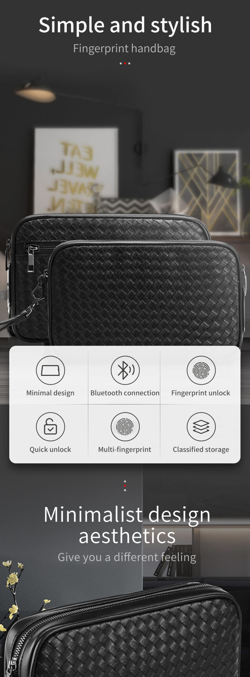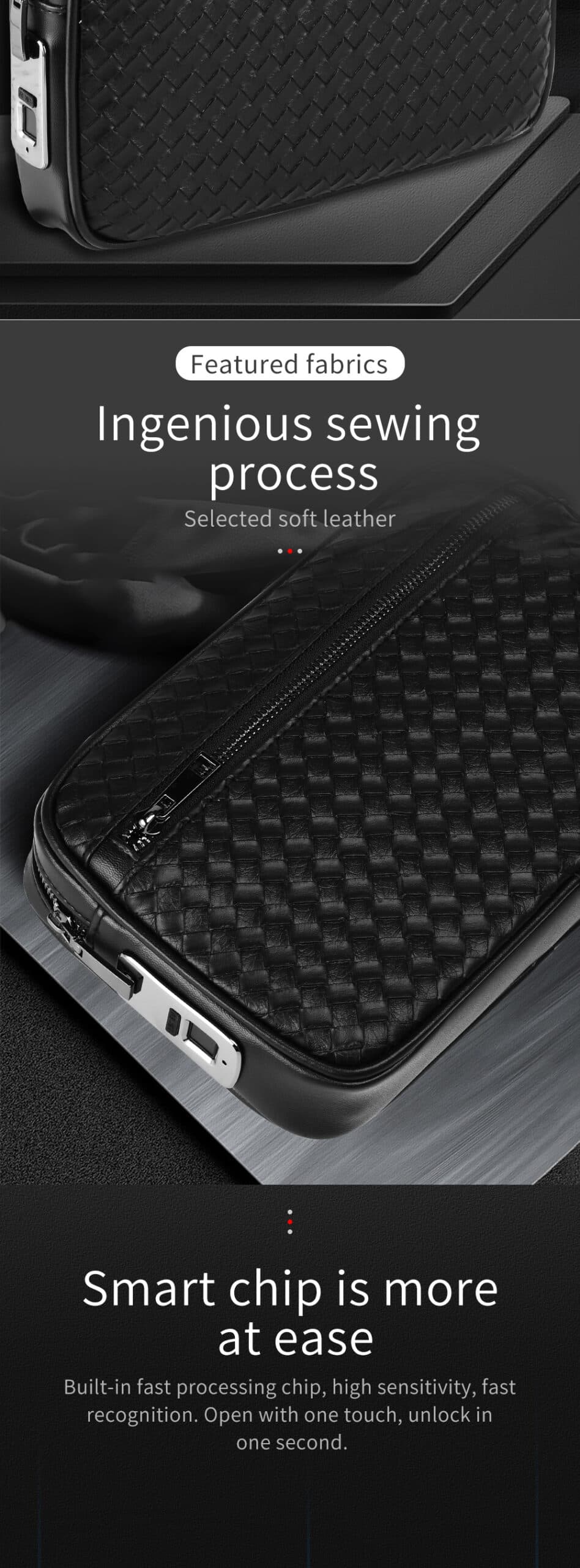 مميزات حقيبة يد رجالية بالبصمة Leather Fingerprint Bag for Men: