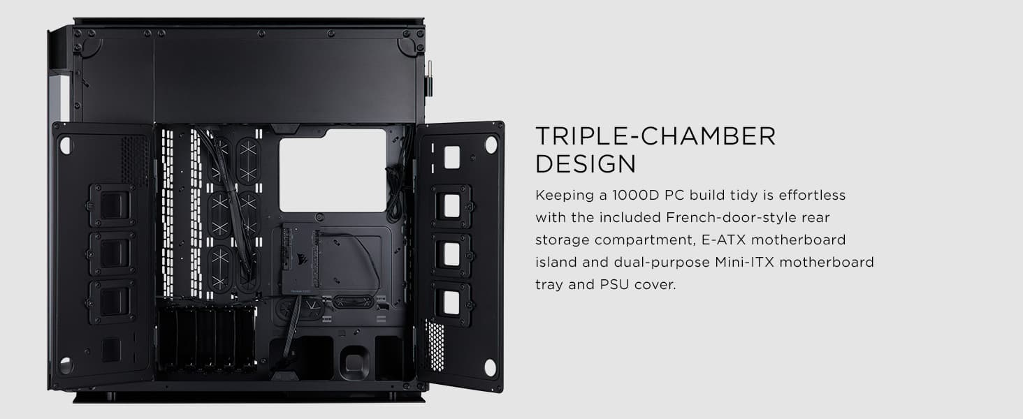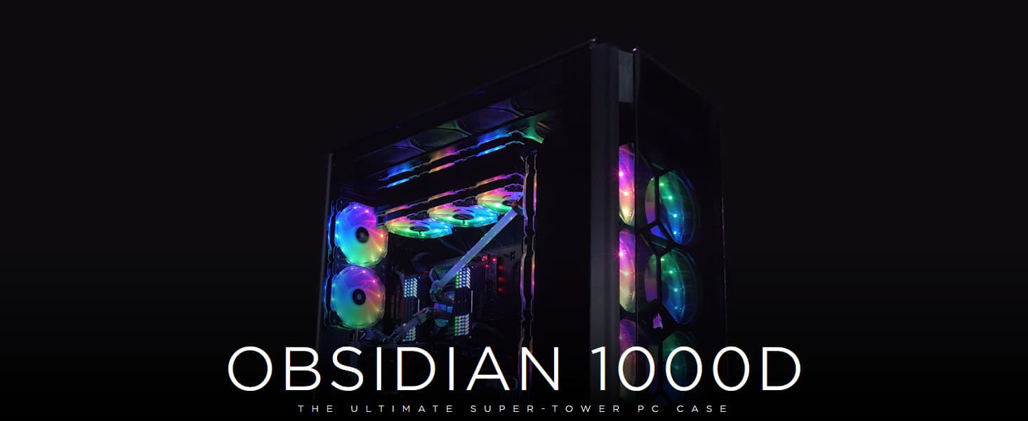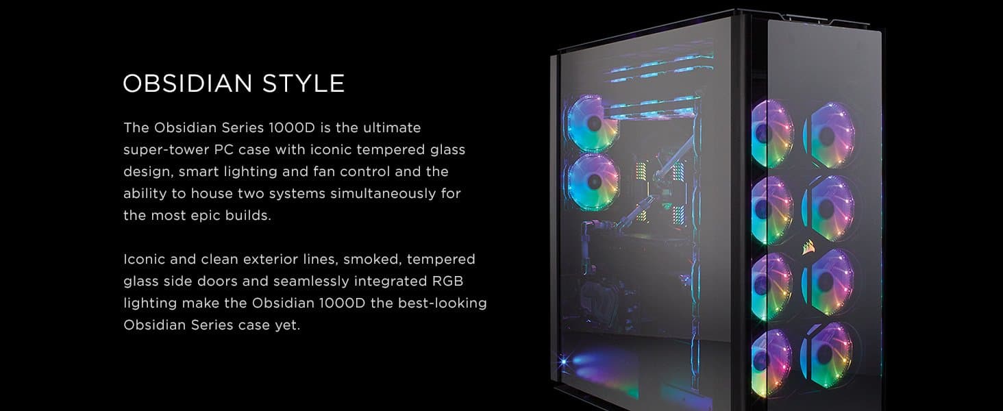 CORSAIR OBSIDIAN 1000D Super-Tower Case Smoked Tempered Glass Aluminum Trim - Integrated COMMANDER PRO Fan And Lighting Controller | CC-9011148-WW