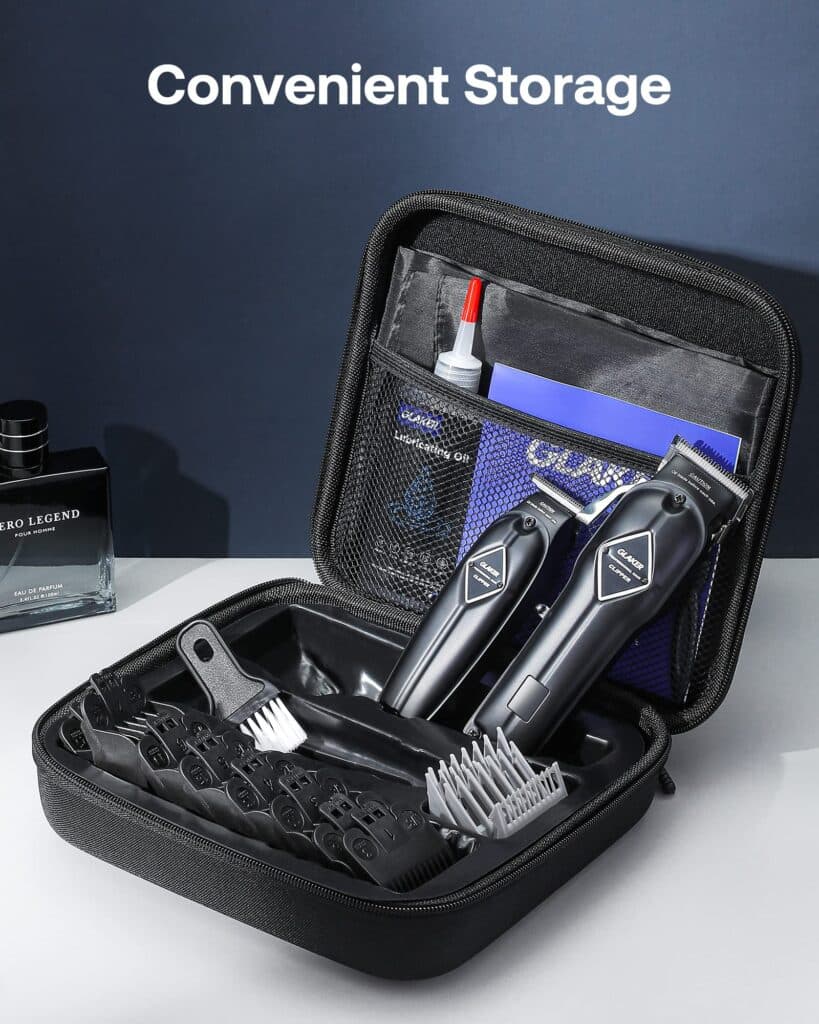 - The GLAKER wireless clipper set features a powerful T blade clipper for achieving desired designs with multiple lengths for grooming, perfectly suitable for professional barbers and home use.