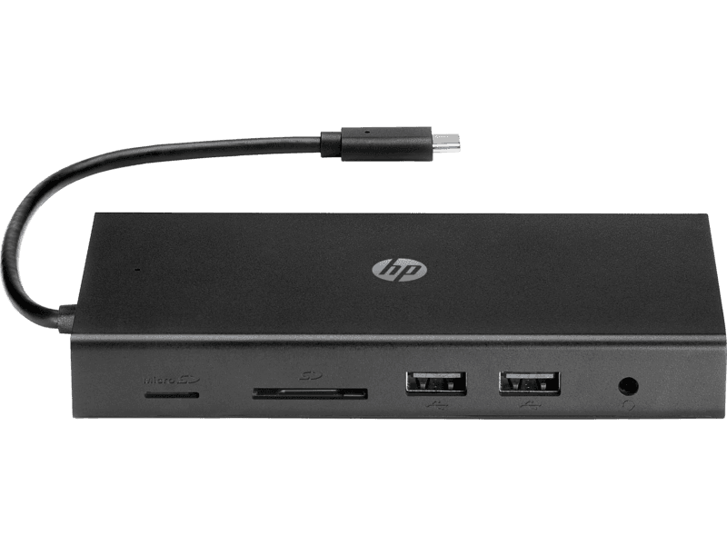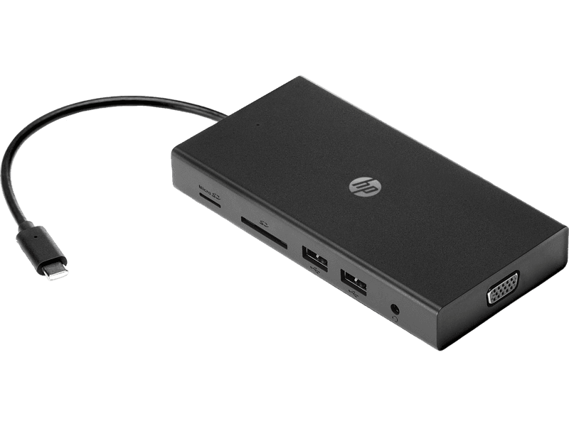 HP Travel USB-C Multi Port Hub, USB-C Pass Through Charging, 1 Gbps RJ45 Ethernet Port, Simultaneous HDMI and VGA Connections, Multiple USB/SD/Micro SD Ports, Black | 1C1Y5AAABB
