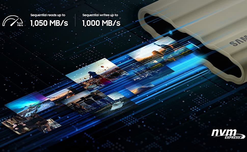 Samsung T7 Shield Portable SSD, 2TB Storage Capacity, USB 3.2 Gen.2 Interface (10 Gbps), Sequential Read Up to 1050MB/s, Sequential Write Up to 1000 MB/s, Blue | MU-PE2T0R/WW